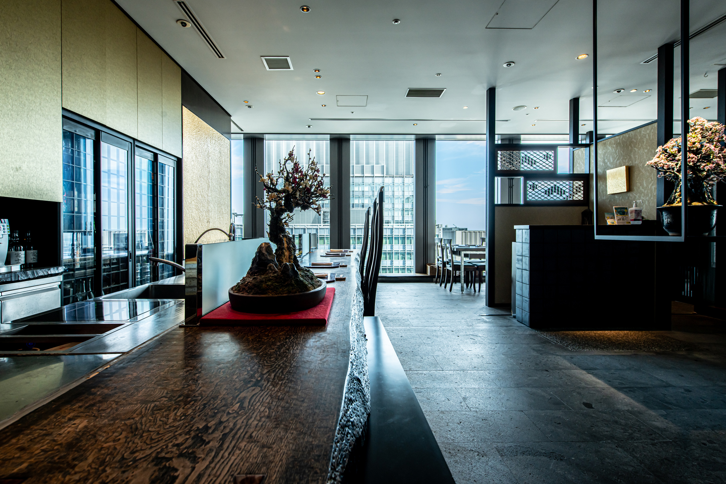 東京駅丸ビルの最上階36階「暗闇坂 宮下 丸の内店」。地上150mからの夜景を見下ろしながら、全国各地から取り寄せた四季折々の旬の恵みを伝統の技を守り革新の心で進化させ、華麗で繊細な「和」に仕立てあげた日本料理。テーブル席はもちろん、カウンター席・個室・掘り炬燵式お座敷と様々なシーンにご利用いただけるお席をご用意しております。御接待・大事なお食事会・お祝いのお席にとご希望に合わせてご案内させていただきます。贅沢な気分に浸りたい時は宮下にお越しください。窓に広がる36階からの《東京の眺望》と共に美味しいお酒と料理を心ゆくまでお楽しみ下さい。